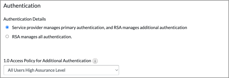 - In the 2.0 Access Policy for Authentication drop-down list, select a policy that was previously configured, and then select Next Step.