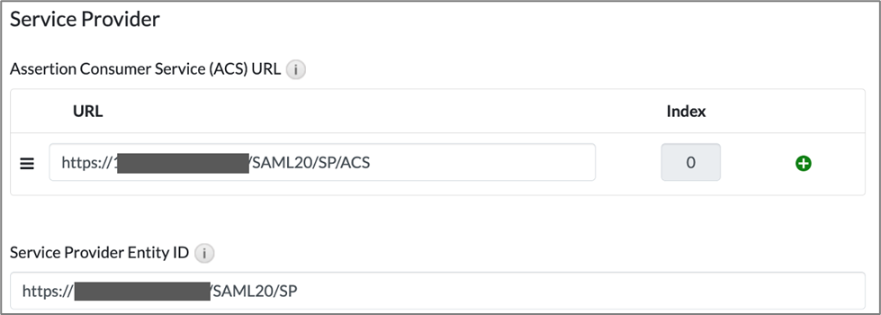 - Service Provider Entity ID: https://<FQDN or IP>:443/SAML20/SP
