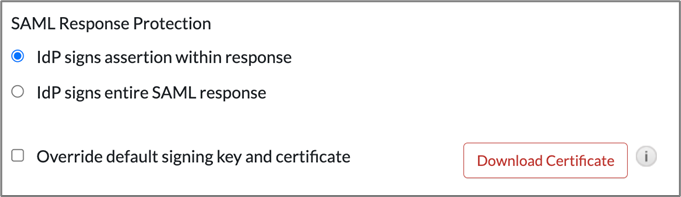 - Under the Message Protection section, choose IdP signs entire SAML response.