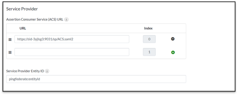 - ACS URL: It will be in this format https://<BASE_URL>/sp/ACS.saml2. This represents the base URL of the PingFederate server. Replace <BASE_URL> with the actual domain of your PingFederate setup.