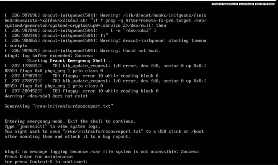 RSA Authentication Manager server fails to boot Entering Emergency Mode (Dracut Emergency shell) - with a warning /dev/sda3 does not exist
