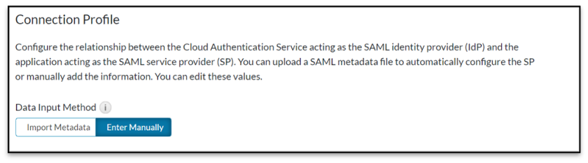 - On the connection profile section, click Enter Manually button.