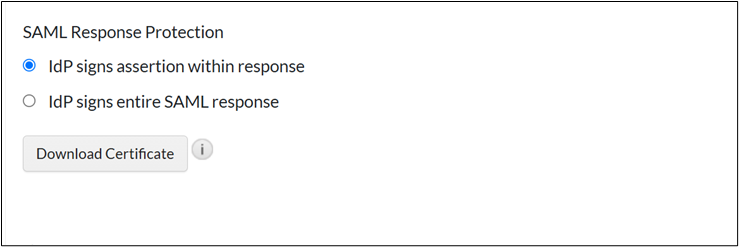 - On the SAML Response Protection section, select IdP signs entire SAML response.