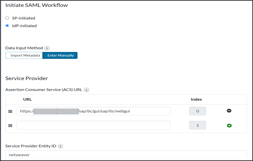 - Service Provider Entity ID: The name must match the Issuer Entity ID as configured in the SAP NetWeaver.