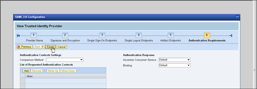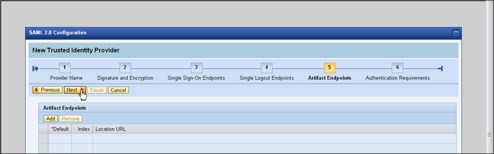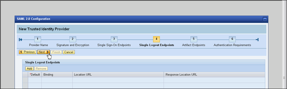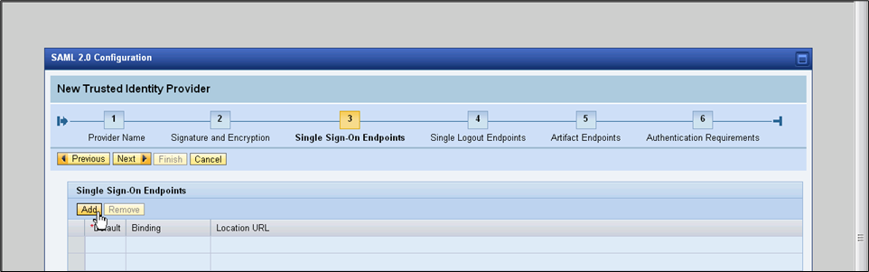 - Click Add to add a single sign-on endpoint.