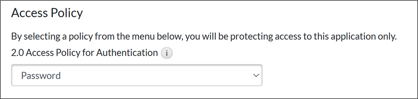 - From the dropdown list select the policy for this application.