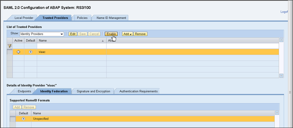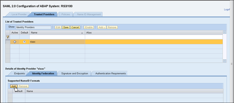 - Click Edit, then Add to add a NameID format.