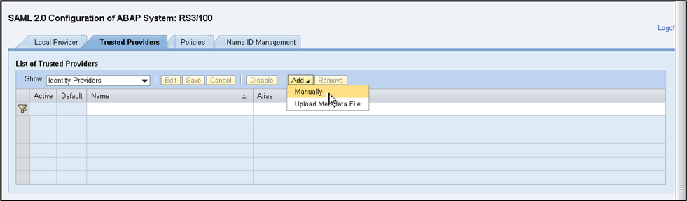 - Sign in to SAP NetWeaver with admin login, start the SAML 2.0 configuration application (transaction SAML2).