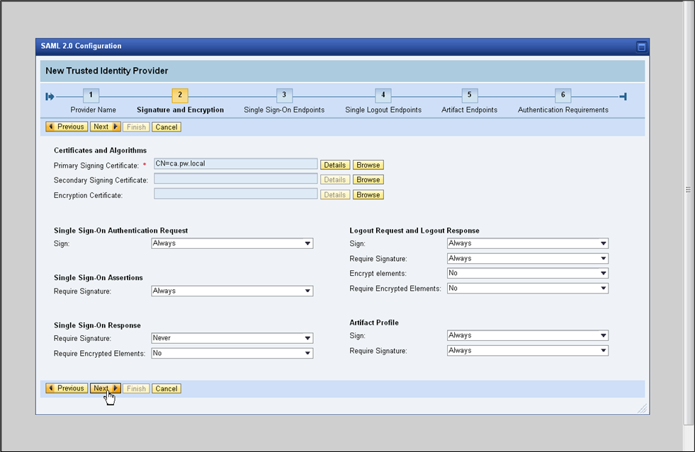 - In the Primary Signing Certificate section, click Browse and upload the Primary Signing Certificate.