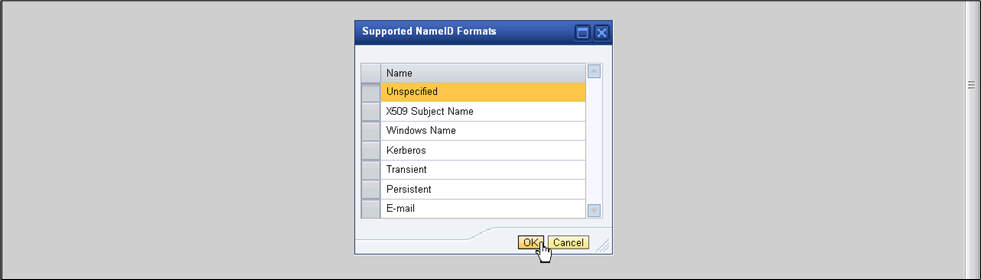 - Choose a NameID format and click OK.