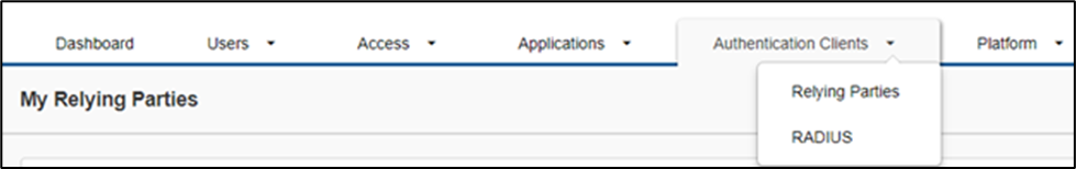 - Sign into the RSA Cloud Administration Console and browse to Authentication Clients > Relying Parties and click Add a Relying Party.