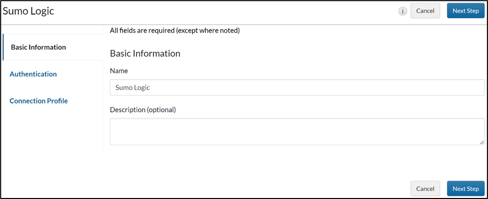 - Enter a Name for the Service Provider in the Name field on the Basic Information page.