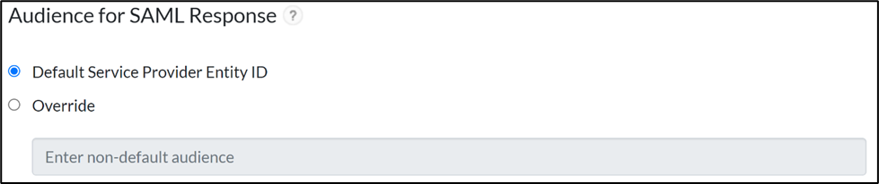 - Select Default Service Provider Entity ID in Audience for SAML Response section.