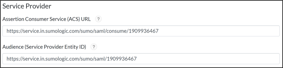 - Assertion Consumer Service (ACS) - Enter the Assertion Consumer URL of Configure SAML in Sumologic. section.