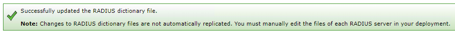 2/ Navigate to Deployment Configuration > RADIUS Servers > enter Super Admin credentials when prompted > left-click a Server Name > select Manager Sever Files > click the Dictionary Files tab