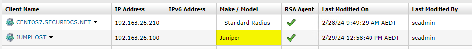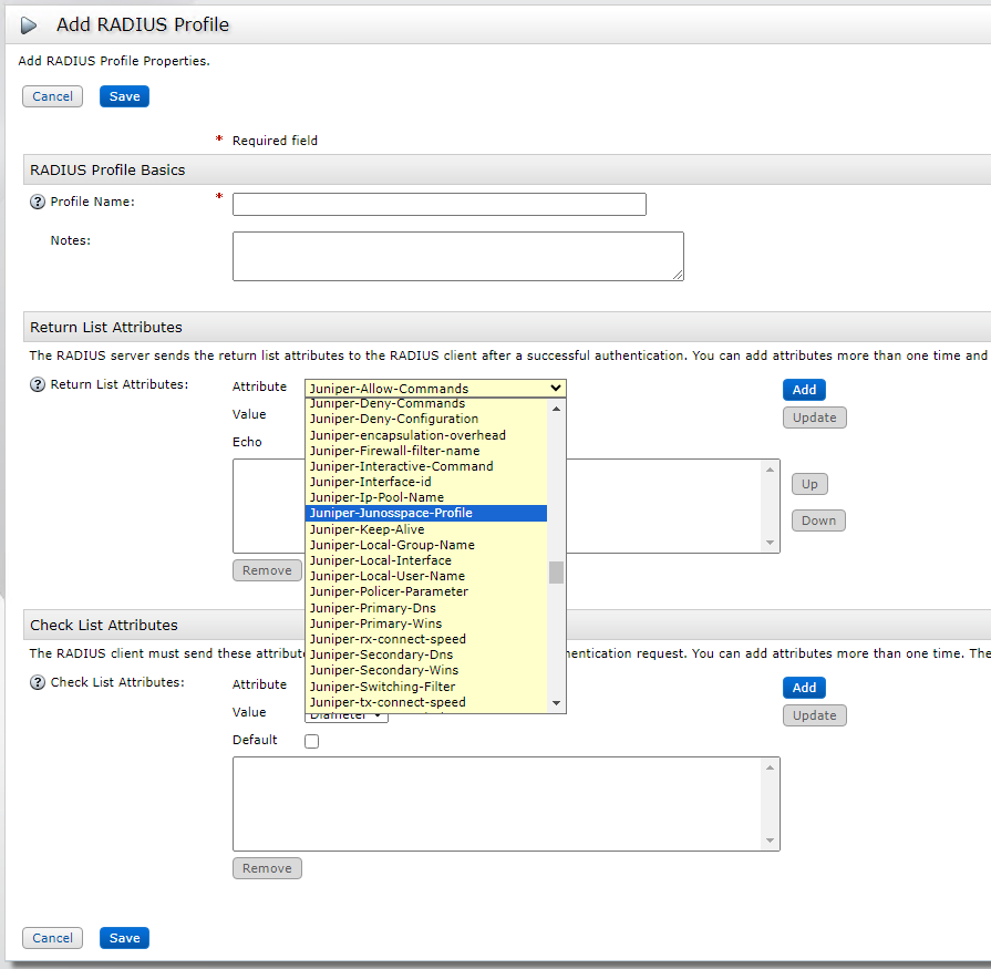 Where a RADIUS client already exists with a Make / Model of “Juniper” then add a new RADIUS profile.