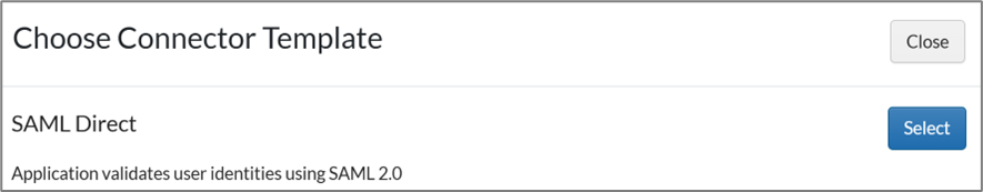 - Click Create From Template and click Select for SAML Direct.
