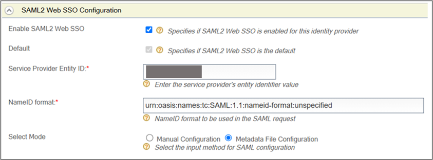 - Expand the SAML2 Web SSO Configuration section.