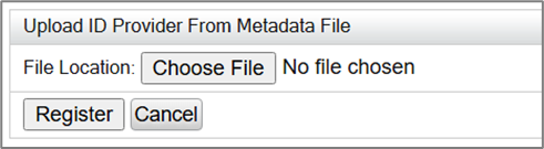 - Select the metadata file downloaded earlier from RSA and click Register. The Identity Provider will be added to the Identity Providers list.