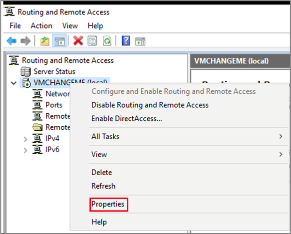 - Open the Routing and Remote Access configuration on the server.