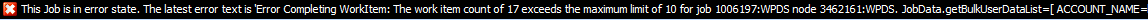 This Job is in error state. The latest error text is 'Error Completing WorkItem: