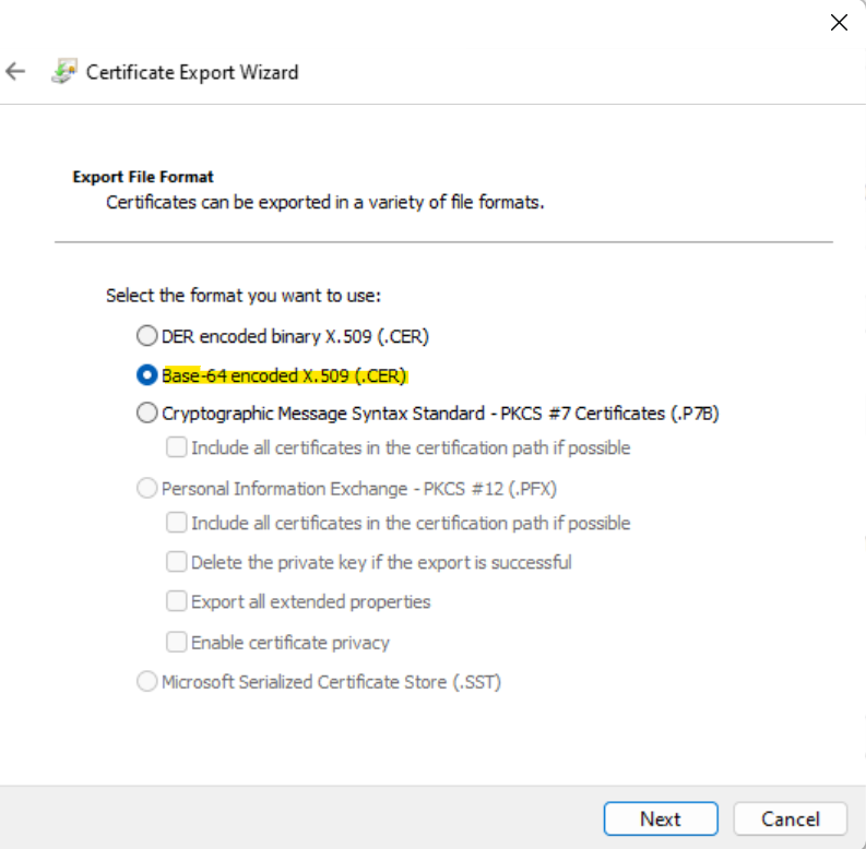 To convert a binary certificate to a PEM encoded format follow below steps.